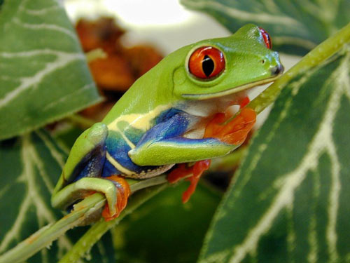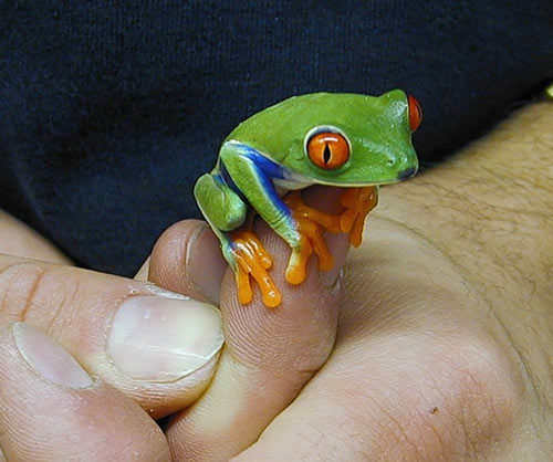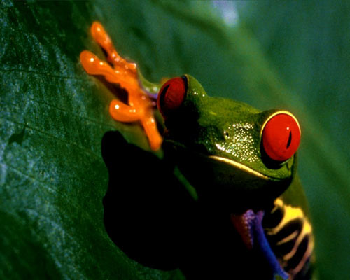 Red eyes tree frogs are as small as a thumb and live in the jungles of Central America.