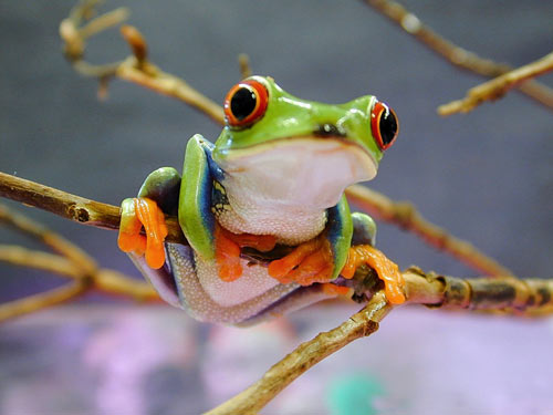 It's like if these frogs have been created for the character animators. They have a cartoon feel to them, with their big eyes and kind of a constant smile on their face. They're always climbing to branches, for which reason they are also called monkey frogs. Their face expressions are almsot human.
