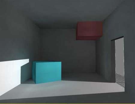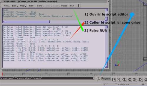 1) Construire une scene simple (un intérieur pour commencer), ou utiliser le script qui le fait a ta place.( Ouvrir le script avec file > open) . Voir image 01.
