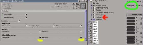 9) Enabler les checkboxes Transmiter et Receiver, en fait on spécifie a XSI que tous les objets de la scéne recoivent et retransmettent les photons. Voir image 05.